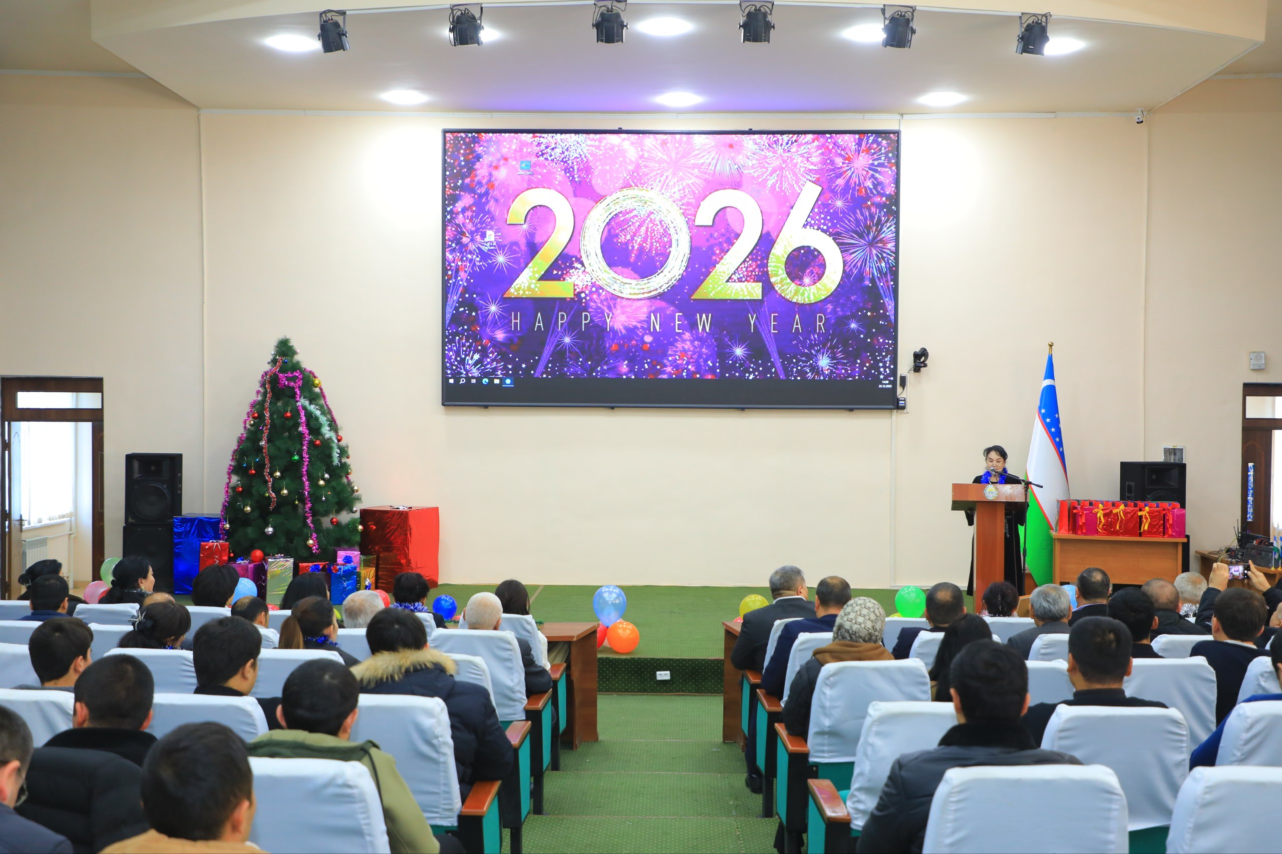 Джизакский политехнический институт готов встретить 2026 год. Украшенные ёлки, деревья, …